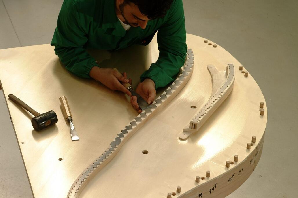 每件乐器的80%部分需要纯手工打造完成。奥斯巴赫之所以在世界范围内受到音乐爱好者的喜爱,正是由于经验丰富的钢琴制作师,正音专家和音准专家辛勤工作的结果,没有他们,也就没有奥斯巴赫品牌的今日和未来。每一台离开我们大门的钢琴,都代表着所有钢琴制造参与者和奥斯巴赫家族的声誉。每一个手工匠人认真对待制作钢琴的每一步并确保其质量。 9个月的日日夜夜成就一架大师钢琴,秉承奥斯巴赫家族100多年制作钢琴的经验和对音乐的热忱,延续祖辈的优良传统。