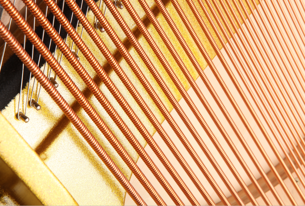 采用德国原产的磷铜系列的Roslou琴弦。它的最大优势最高境界是永不生锈;特制缠绕低音铜弦,低、中、高音区的高度精密吻合,它最大的振幅厚度保证钢琴的延音,共振更好,保证了钢琴音色的优美与穿透力。