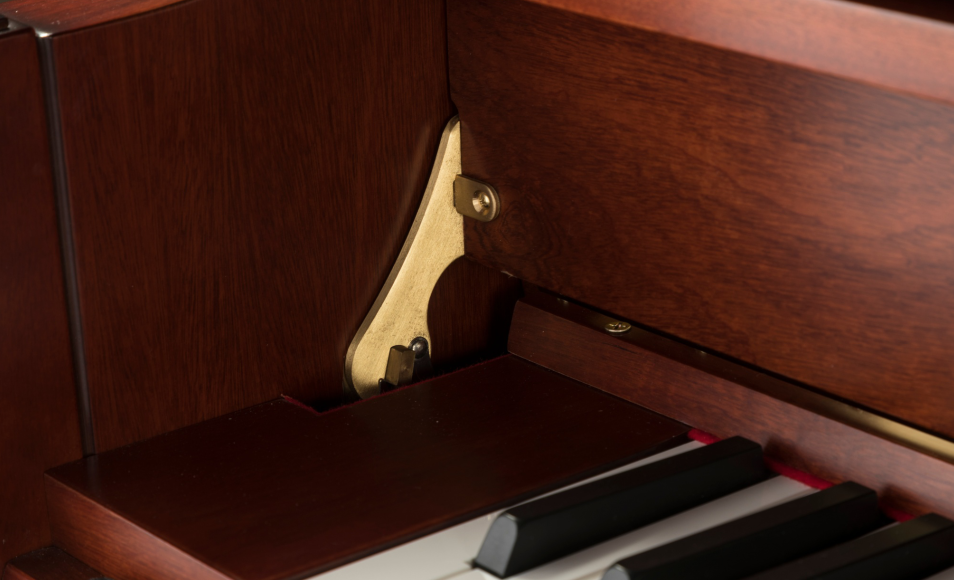 良好的共振系统:实质榉木的踏板连接杆,音频低,音色沉,可以降低声音的谐振及共振,达到金属杆所达不到的解析力和清晰纯净度。GutesResonanz-System: PedalverbindungsstangeausechterBuche, leiseTonfrequenz, dickeTonfarbe. Mitdieser Weise kannResonanzder Stimmevermindern, derenAuflösung, Reinheit und KlarheitMetallstrangenichterreichenkann.